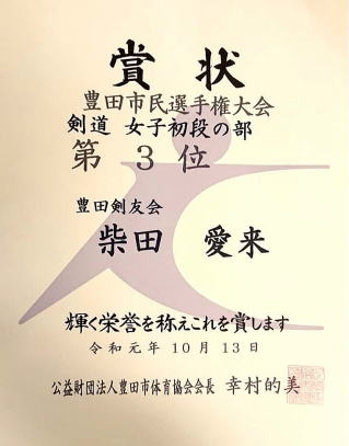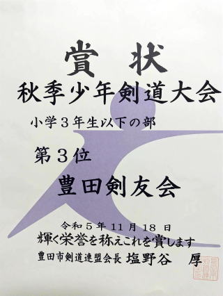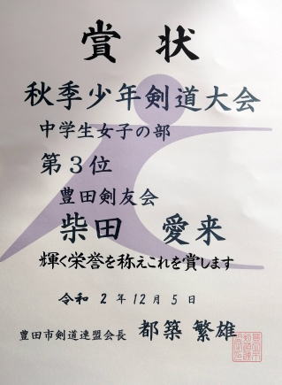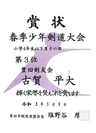 豊田市春季少年剣道大会 小学5年生女子の部で3位に入賞!