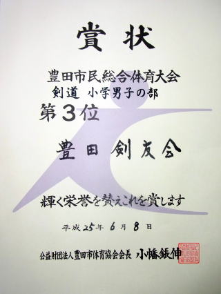 豊田市民総合体育大会 小学男子の部で3位に入賞!